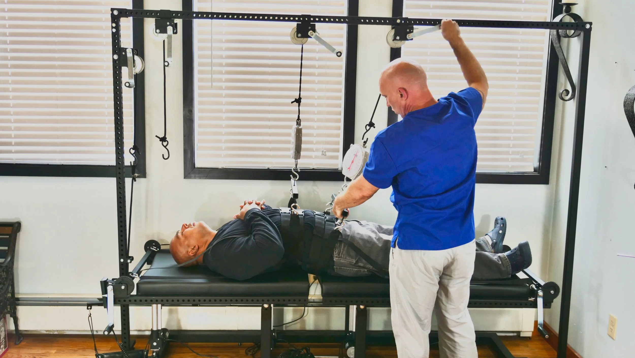 A patient seen on the Robo-Trac machine. The Robo-Trac is designed and manufactured directly by Dr. Roberto.